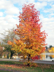 - Acer japonica ‘Aconitifolium’ is a stunning Japanese maple of smallish stature; it only grows to about 12 feet. The leaves are deeply cut and turn from scarlet in early fall to a deep burgundy by the time they fall off at the end of the month.