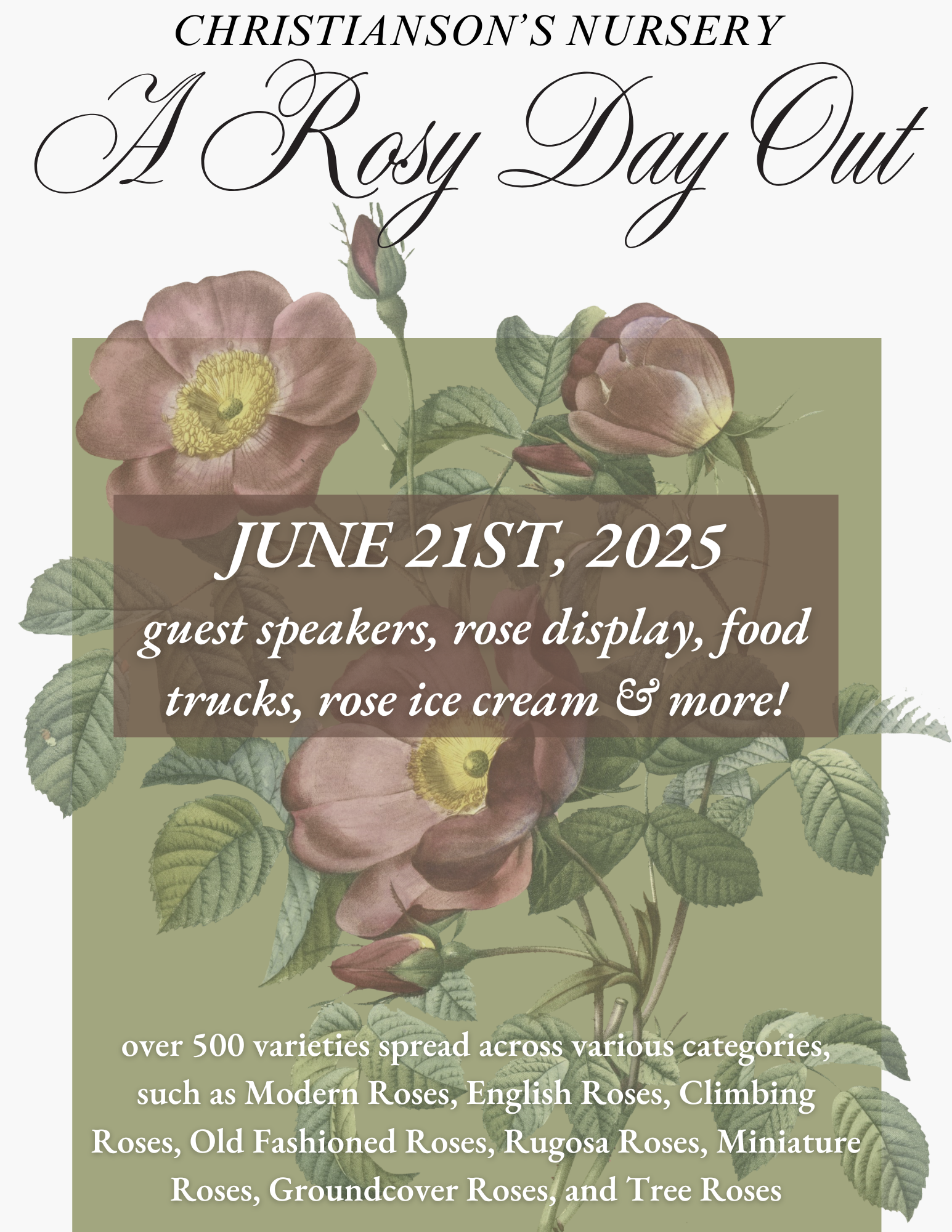 We are thrilled to welcome you to our 23rd Annual Rosy Day Out Festival—a long-standing and beloved tradition celebrating the timeless beauty of garden roses. Held in the heart of where it all began, our charming Schoolhouse Gardens, this special event brings together rose enthusiasts, curious gardeners, and nature lovers for a full day of floral inspiration and community joy.