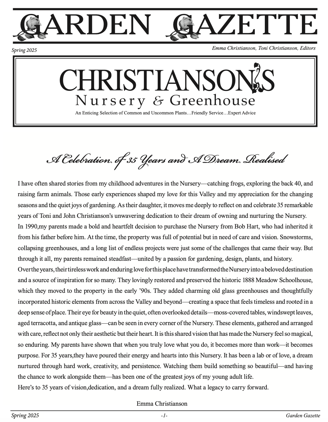 We’re excited to announce the new online edition of our Spring Gazette! While printed copies will be arriving in your mailbox within the next two weeks, you can get a head start by exploring our latest issue online. Dive into stories about the season’s most anticipated events, exclusive gardening tips, and upcoming sales you won’t want to miss. Happy reading—and happy planting!